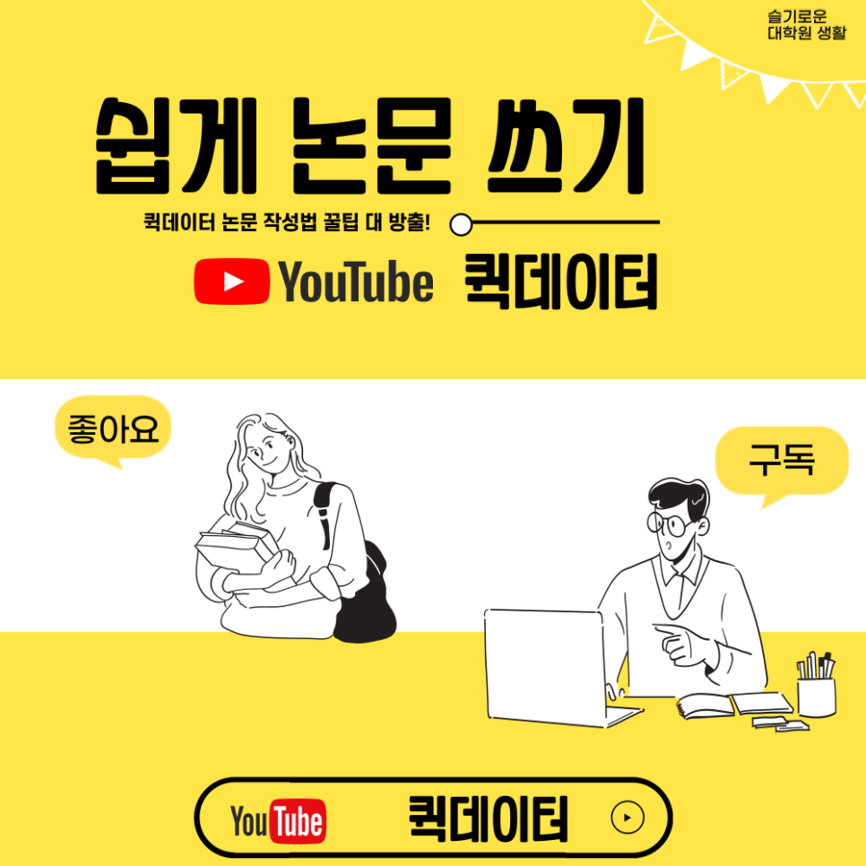 논문을 처음 시작하는 대학원생, 직장과 병행 중인 바쁜 직장인 대학원생이라면 퀵데이터 유튜브 채널이 당신의 든든한 조력자가 되어드릴 거예요!