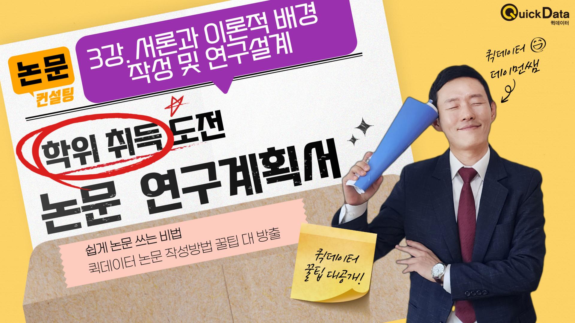 논문 연구계획서 어떻게 시작해야 할지 막막한 여러분들을 위해 퀵데이터가 논문 연구계획서 작성하는 방법에 대한 꿀팁 영상을 제공해드립니다.
