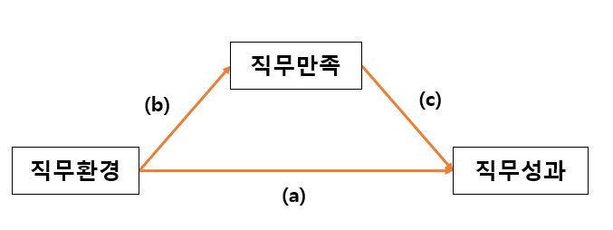 가설 4: 직무만족은 직무환경과 직무성과 간 관계에서 매개효과가 있을 것이다.