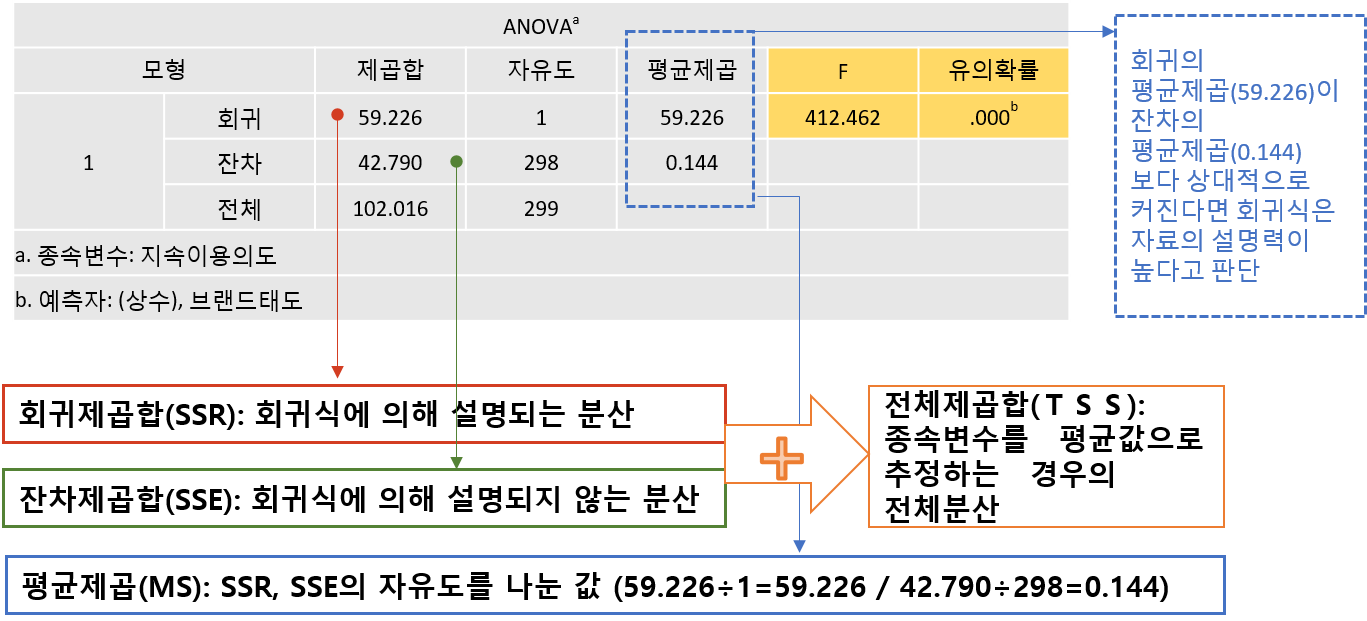 회귀식의 정도는 회귀식의 설명력을 나타내고, 설명력이 높을수록 회귀모형은 유의