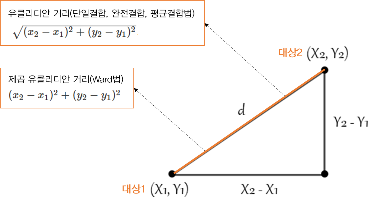 - 제곱 유클리디안 거리는 Ward법 사용할 때