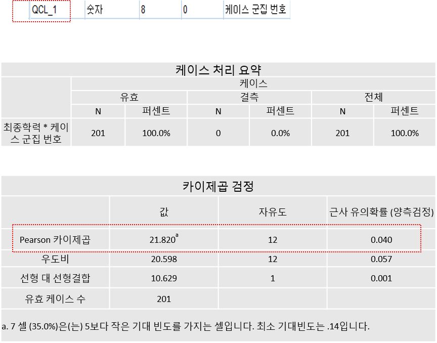 - 새롭게 생성된 변수(QCL_1)를 이용하여 최종학력 간 비교분석