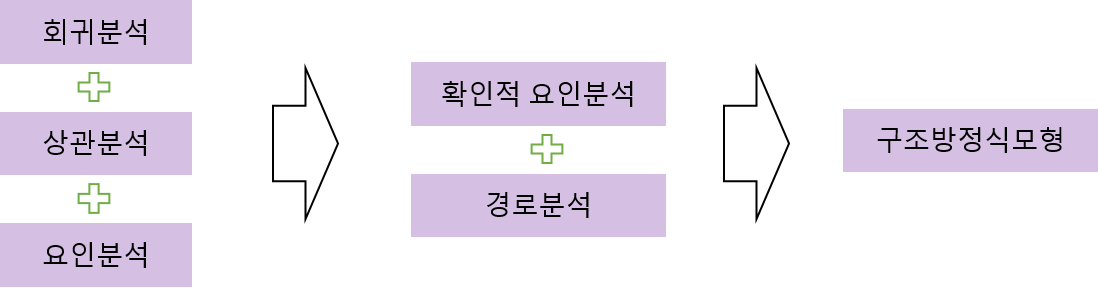 - 다중회귀분석은 종속변수가 반드시 하나만 존재하는 제약때문에 여러 항목에 대한 평균값을 이용하여 단일항목으로 변환해야 하고, 측정항목 간의 오차가 무시됨