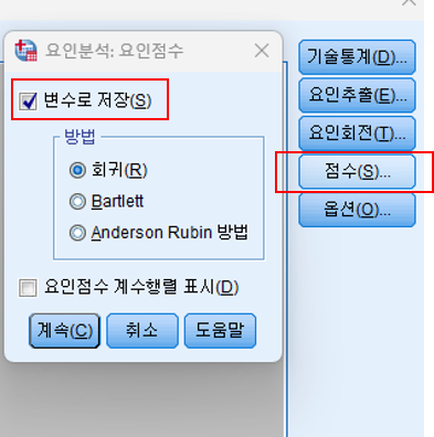 - 요인 점수를 변수로 저장하여 구분된 요인에 변수 생성