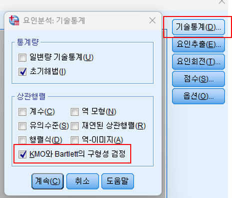 - 값이 유의적일 때 자료가 요인분석을 수행하는데 적합함