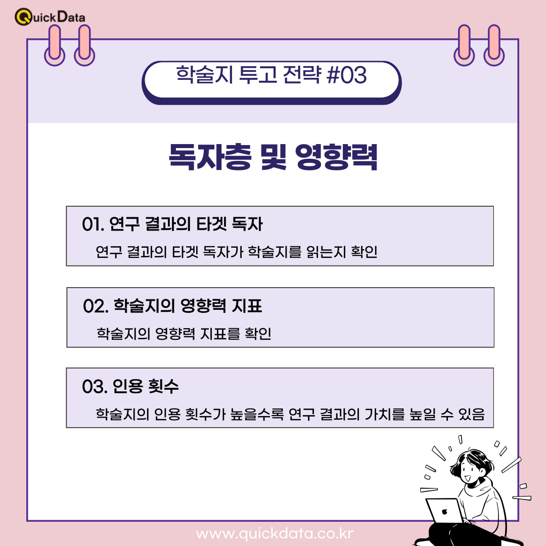 - 학술지의 영향력 : 학술지의 영향력이 높을수록 더 많은 사람들에게 연구 결과를 알릴 수 있습니다.
