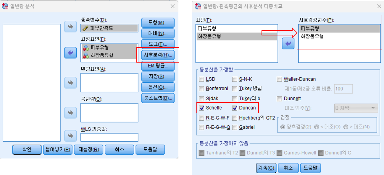 이원분산분석(Two-way)의 주효과 분석방법 및 해석 자세한 설명은 동영상으로▼▼▼