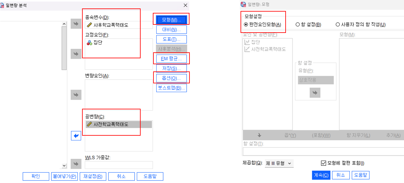 "공분산분석(ANCOVA) spss분석 방법 및 해석 2편"