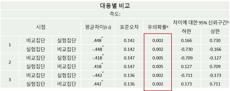 (1) 사전검사 : 비교집단 > 실험집단 (프로그램 실시전)