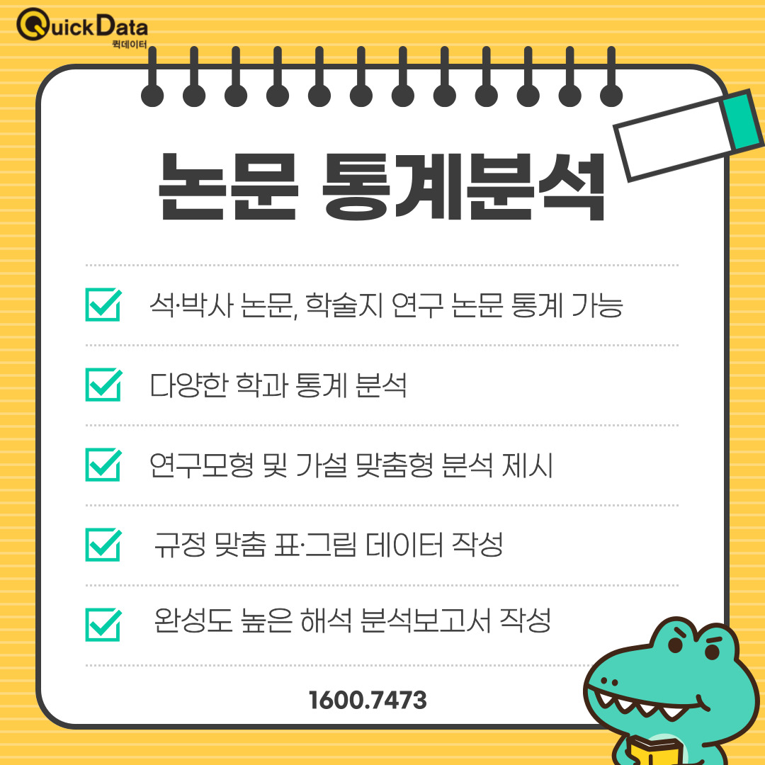 퀵데이터는 바쁜 직장인 석·박사과정을 위한 논문 통계 분석·작성·첨삭 원스톱 서비스를 제공합니다.