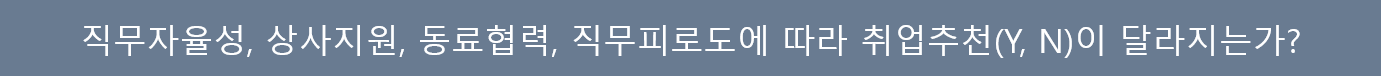 • 즉, 직무자율성(wald=8.978, p<.01)과 동료협력(wald=5.641, p<.05)이 취업추천을 구분하는데 유용하며 이들 값이 클수록 취업 추천하는 집단에 분류될 가능성이 크다고 판단할 수 있음