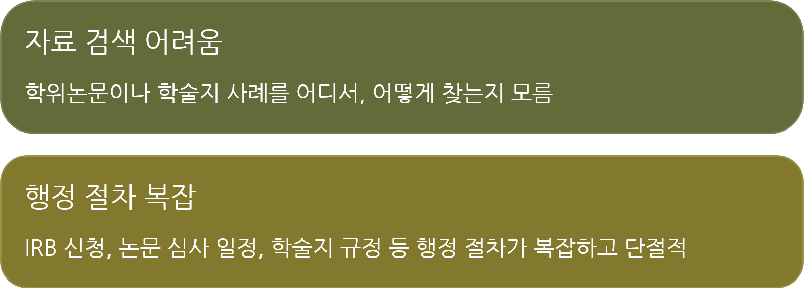 같은 상황을 겪는 사람과 공감하고 고민을 나눌 곳이 부족한 환경은 논문 포기를 고민하게 만들기도 합니다.