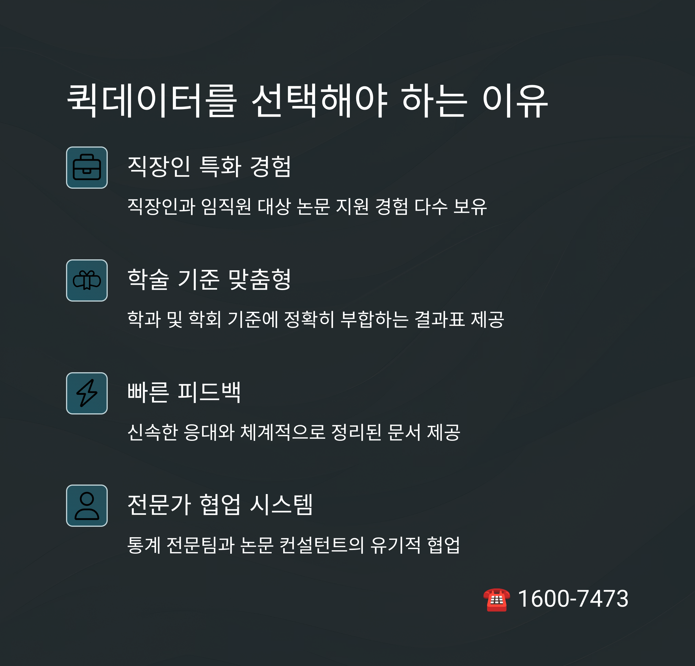 퀵데이터, 논문작성&논문통계 대행 서비스를 제공합니다.
