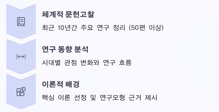 - 핵심 이론 선정: 연구 주제와 밀접한 2-3개 이론