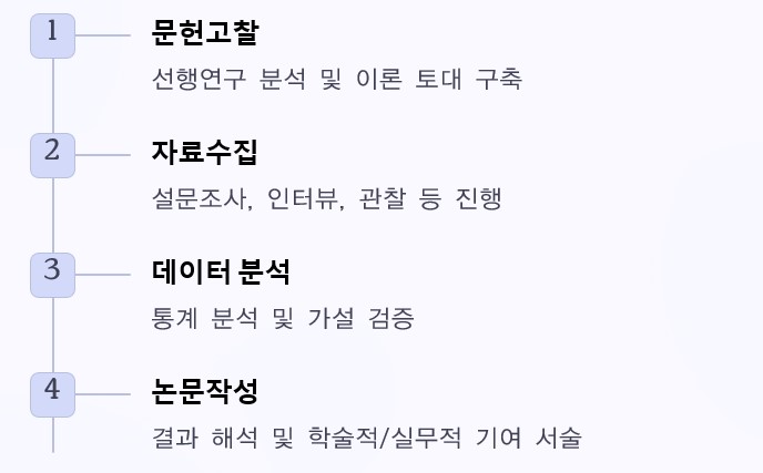 - 단계별 일정: 문헌고찰 → 자료수집 → 분석 → 논문작성