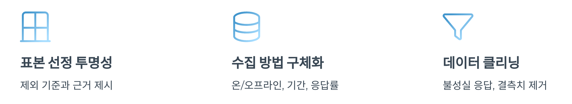 데이터 클리닝 과정: 불성실 응답, 결측치, 이상치 제거 기준을 명확히 제시하여 데이터의 신뢰성을 입증