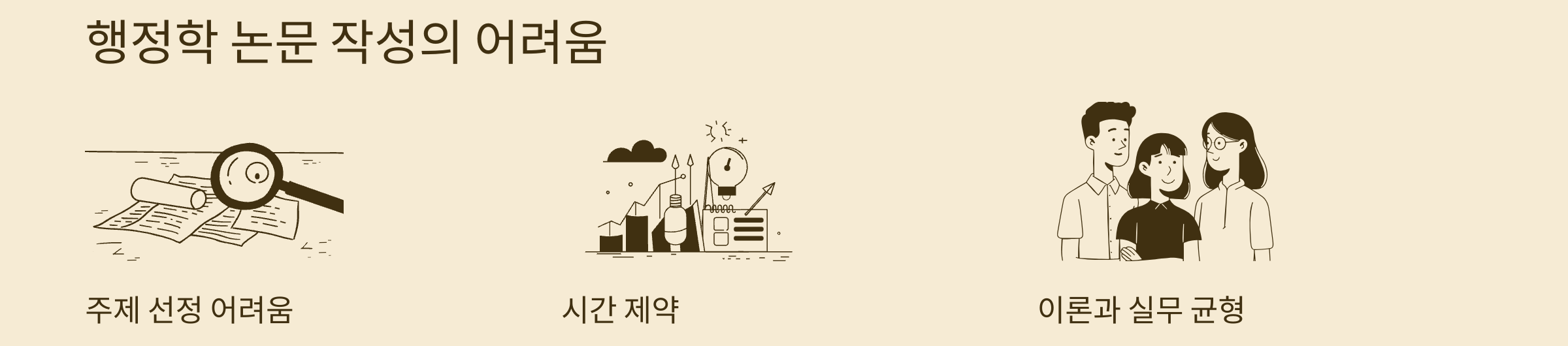 행정학 논문은 주제 선정부터 연구 설계, 분석 방법론까지 현실 행정과 학문적 논리를 동시에 요구합니다. 특히 논문 주제 선정은 논문 전체의 방향성을 결정하므로 충분한 시간과 정보를 들여 주제를 구체화하고 데이터 수집 가능성까지 고려하는 것이 중요합니다.