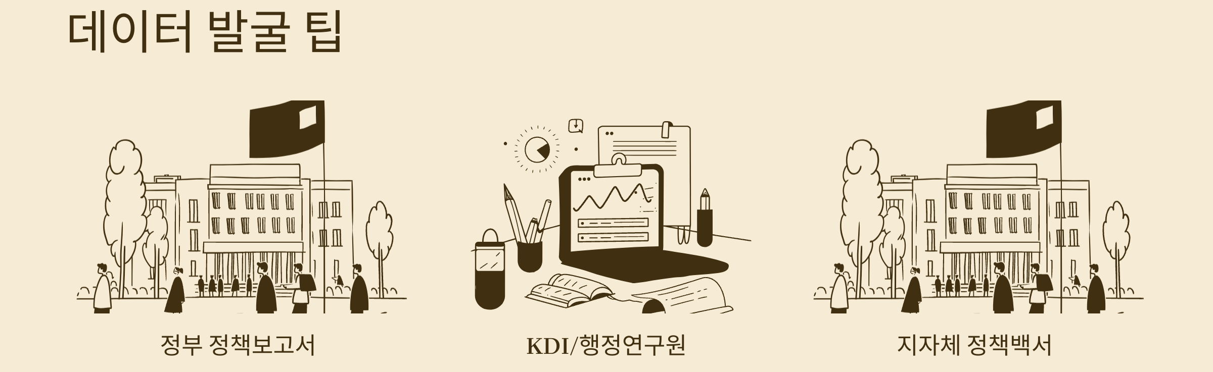 ★ 퀵데이터 Tip : 주제를 고를 때는 정부 정책보고서, 국회입법조사처 자료, 지방자치단체 정책백서, KDI 및 한국행정연구원 보고서 등에서 최근 이슈를 찾아보면 행정학 논문다운 현실성 있는 주제를 쉽게 발굴할 수 있습니다. 가장 중요한 것은 데이터는 확보할 수 있을 때만 주제를 선택해야 한다는 점입니다. 데이터 접근이 어렵다면 아무리 좋은 주제라도 분석까지 진행하기 어렵습니다.