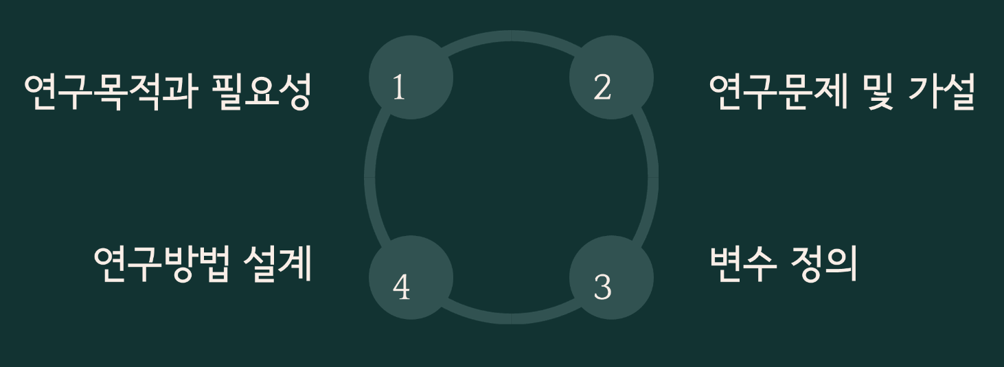 논문 주제 설정 → 연구계획서 작성 → 설문 설계 → 통계 분석 → 논문 초안 → 심사 준비