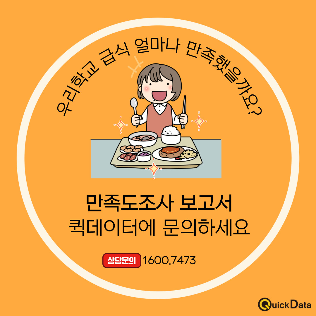 급식 만족도를 평가하기 위한 설문조사 기획부터 설문지 구성, 만족도 분석, 그리고 최종 보고서 작성까지 퀵데이터와 함께 진행해 보세요.