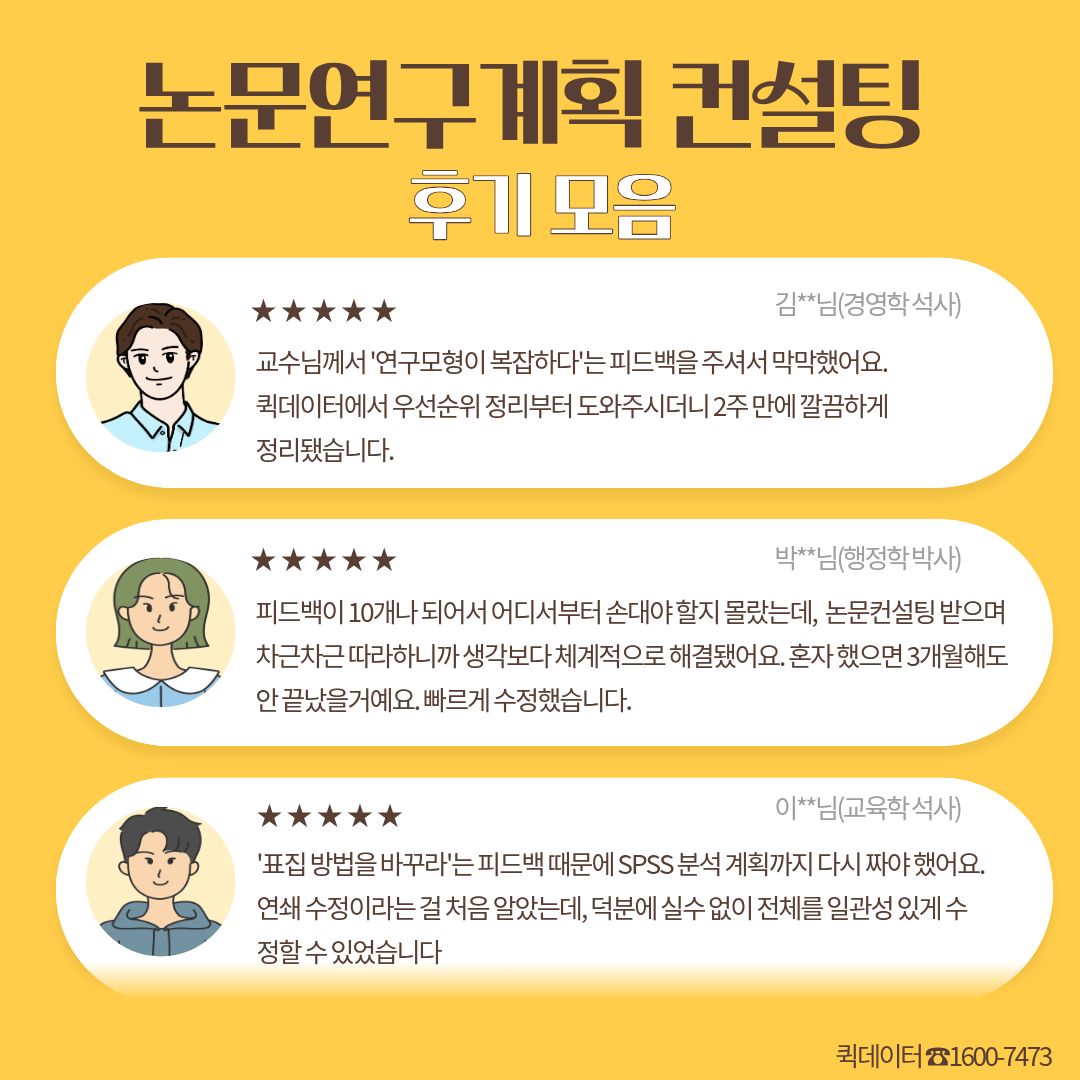 그럴 땐 전문가의 손길이 필요한 시점입니다. 퀵데이터의 논문컨설팅은 다음과 같은 부분까지 함께 지원합니다.