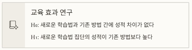 연구 주제: "새로운 학습법이 성적 향상에 효과가 있을 것이다"