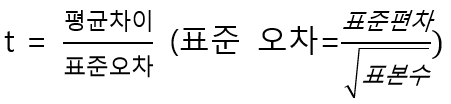3단계: t 통계량 계산 평균 차이를 표준오차로 나눔