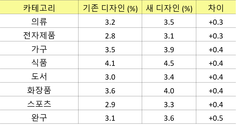- 3~4주차: 동일한 8개 카테고리에서 새 디자인 적용