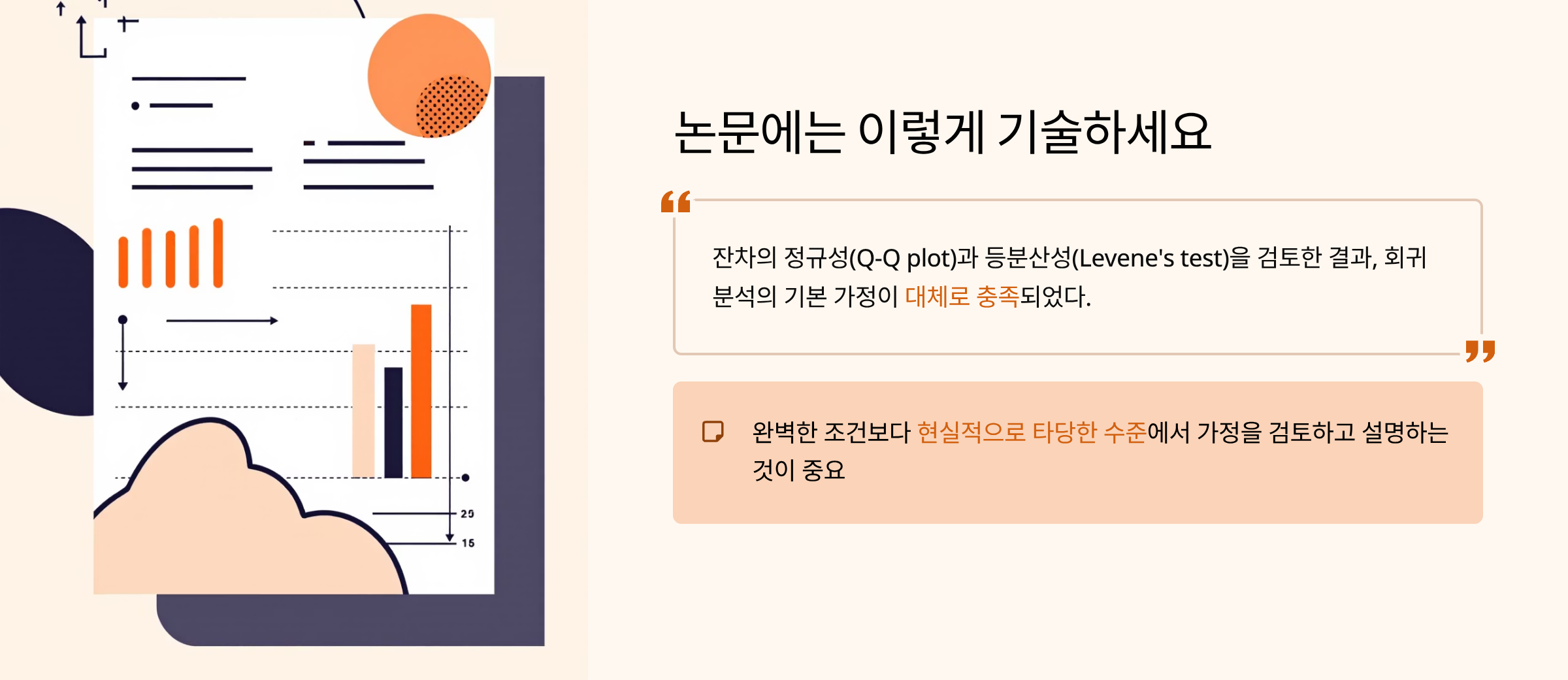 이 다섯 가지 원칙을 기억하면, 여러분의 회귀분석 결과는 훨씬 더 설득력 있고 논리적인 연구로 완성될 것입니다.