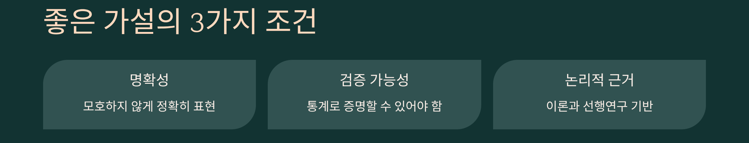 좋은 가설은 명확·검증 가능·논리적 근거를 갖춰야 합니다.