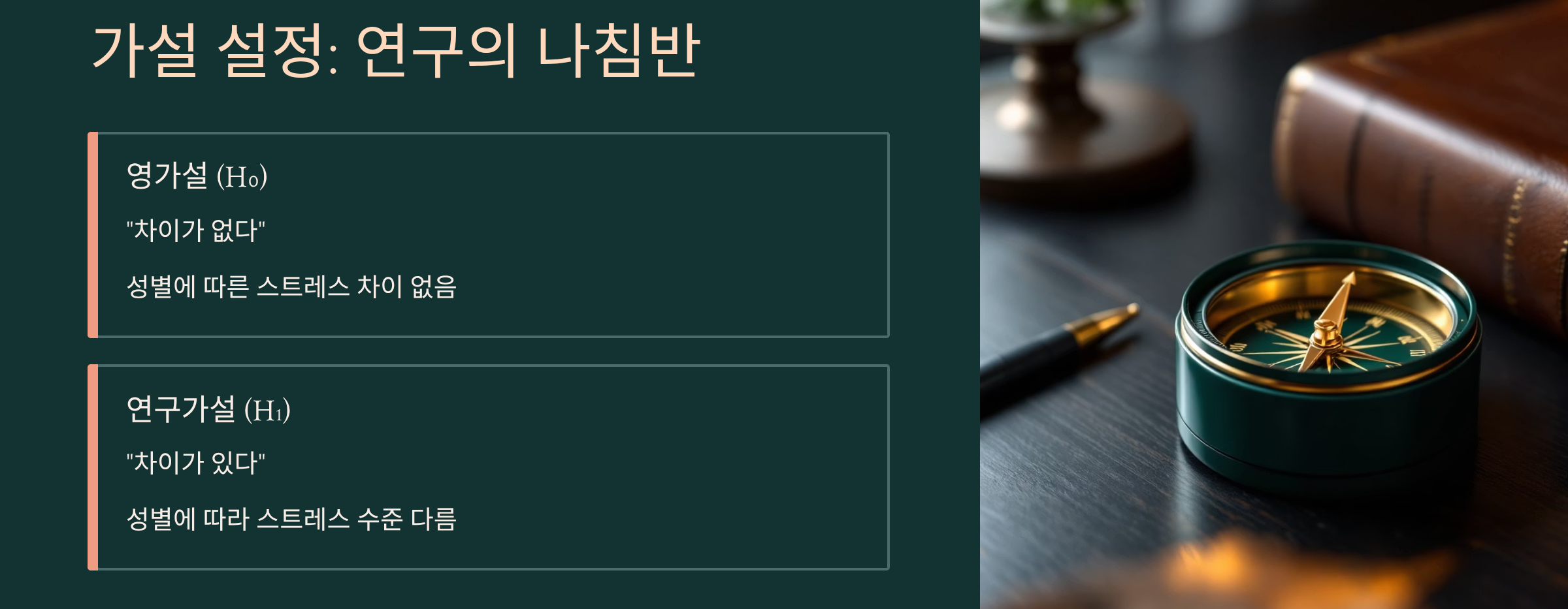 논문통계의뢰를 맡기기 전, 반드시 해야 할 단계가 가설 설정(Hypothesis Setting) 입니다. 가설은 연구의 방향을 제시하는 논문 분석의 나침반 역할을 합니다.