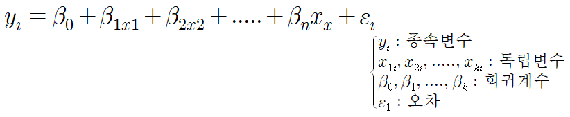 다중회귀분석은 2개 이상의 독립변수들과 1개의 종속변수의 관계를 분석하는 방법이고 간격척도 및 비율척도의 연속형 자료로 분석합니다. 실제 석사·박사 학위논문이나 기업에서는 보통 다중회귀분석이 많이 사용되고, 순서 및 명목척도일 경우 더미변수로 변화시켜 사용합니다.