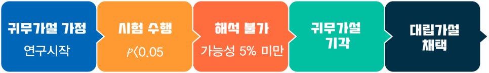 보건의학에서는 '영가설'을 전제로 연구를 시작합니다. 새로운 치료법 효과를 입증할 때 "새로운 치료법은 효과가 없다"라는 가설을 전제로 시작하는데.이를 '영가설'이라 합니다. 연구자가 증명하고자 하는 실험가설과 반대의 입장, 증명되기 전까지는 효과나 차이가 없다는 영가설을 귀무가설이라 하며, 반대로 실험을 통해 규명하고 하는 가설, 영가설의 반대를 대립가설이라고 합니다.