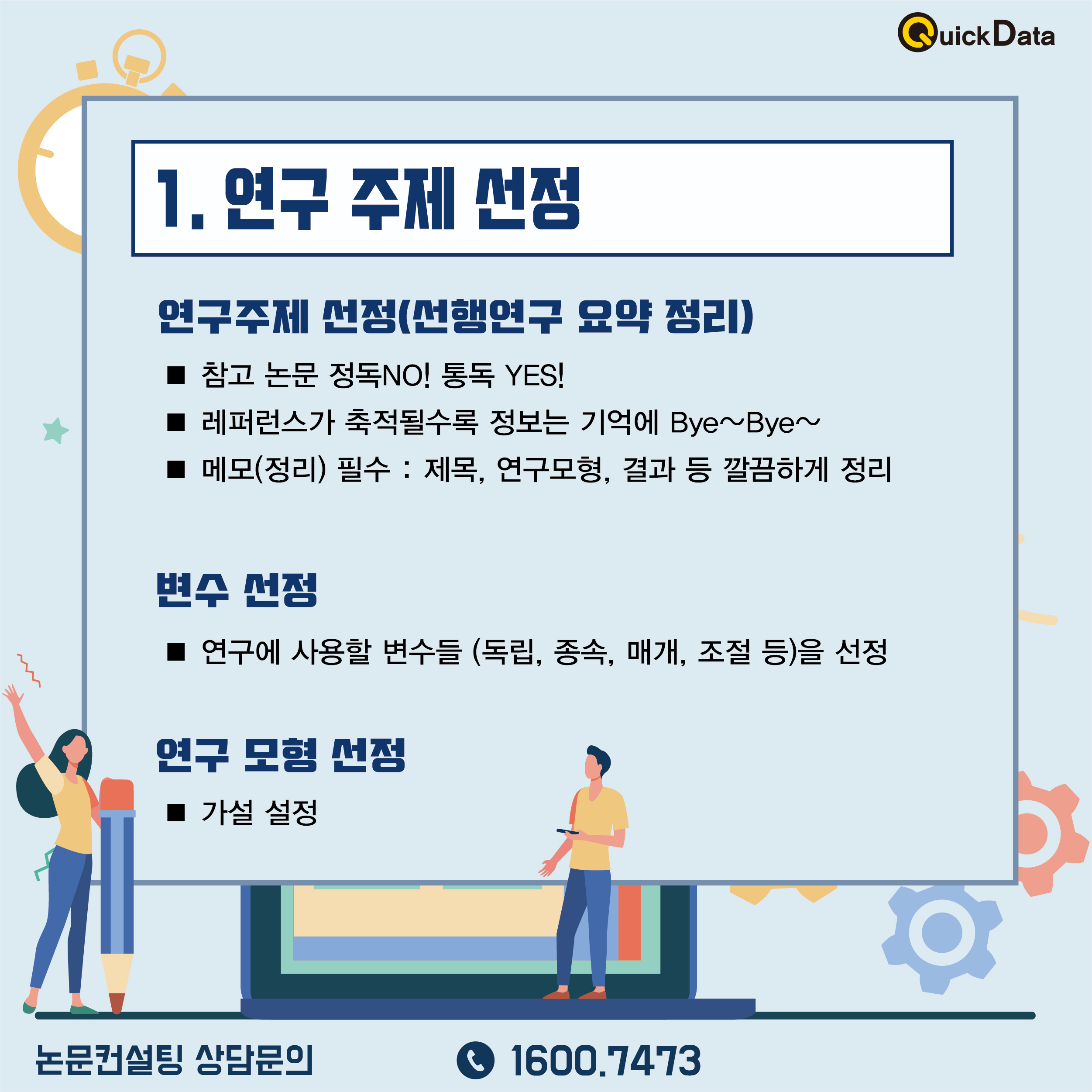 자~~ 논문쓰기 어렵지 않아요. 논문컨설팅 전문 퀵데이터와 함께하시면 담당 박사님이 A~Z까지 꼼꼼하게 알려드립니다.