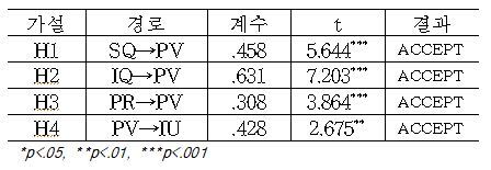 가설1. 시스템 품질은 인지된 가치에 영향을 미칠 것이다.